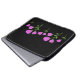 Den har en enkel, handritad blomdesign i rosa med guld-folie som är detaljerad, på svart bakgrund.