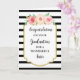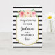 Grattisar på ditt studenten-kort för syster med vackra rosa vattenfärgblommor, svart och vitt rand mönster och sentimental vers.