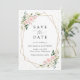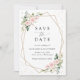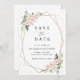 Vänner och familj i inbjudan i stil och ange tonen för din speciella dag med den här charmen spara datumkortet. Utformningen har rosa- och vitvattenblommor, grönt, guld konetti och guld ram på vit bakgrund.