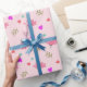 Rosa Flowers with Hearts Wrapping Papper Presentpapper