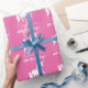 Rosa födelsedag för flickor för vitUnicornpersonlig som slår in papper. Mönster av den nätt vitsilhouetten av en unicorn på en shock rosabakgrund. Skräddarsy för att ändra bakgrundsfärg till någon annan färg. Personlig med födelsedagflickanamn i vitstilsort och henne ålder. Roliga unicornpartytillförsel för en themed födelsedag för unicorn. www.SamAnnDesigns.com