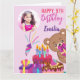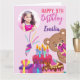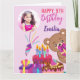 Rosa teddy födelsedagsfest-fotokort för flickor från ett runt bild.