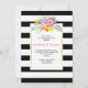Söt inbjudan till förlovningsfest i modern blommigt och chic med underbar rosa och gula blommor och löv, en gräns som är gjord av svart och vitt rand och er text på vitt ram. Baksidan är täckt med en stripe mönster i svartvitt.