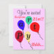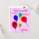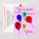 Färgfulla ballonger för flygande födelsedag inklusive rött, blått, gult. 21:a födelsedag eller personlig anpassning oavsett ålder. Ljus rosa bakgrund med Party brev skriven över ballonger. Infoga detaljer på baksidan i röd, svart grönt mot vit bakgrund. Originalteckningsutkast av TamiraZDesigner.