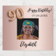 En ro guld, rosa, dekorerad. Anpassa och lägg till ett datum, namn och ett foto. Åldersnummer skrivet med ett stil-teckensnitt med ballong.