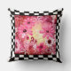 Rosa för Blommigt av vimisk Abstrakt Röd check Gr Kudde
