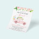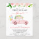 Budgetenhet efter babykläder Vattenfärg för inbjudningar till Vår bröllop Flicka eller Boy Shower på vit bakgrund - innehåller vacker och elegant manustypografi med moderna botaniska blommor, bil, ballonger, löv och grönenergi för att speciella Mor ska vara firande.