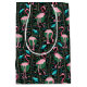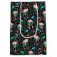 Denna eleganta flamingofågel mönster somgåvan hänger lös, göras i en retro 20-talart décostil. De ljusa rosa flamingosna vilar mot en bakgrund, som inkluderar fernormbunksblad i djärva färger, och geometriskt rektangulärt formar skuggar in av krickagrönt/turkosblått, all på en bakgrund av svarten. Detta original, den stylized designen är perfekt för någon, som älskar dessa tropiska djur, och söker efter ett nätt mönster med en retro 20-talvridning.