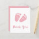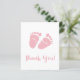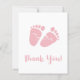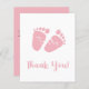 Tack för att du fick kort för dina duschgäster i flicka med "Tack!" i ett pastellskript för rosa och en samordnande vattenfärg för rosa på baby fötter. På motsatt sida kan du enkelt anpassa ditt tackmeddelande.