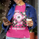En julgrafik till kvinnor med modern retrotypografi med "merry and bright" som säger med söt christmas ljus som bär julhatt på schackbrädet. Både vit text och rosa till skjortan stil kan ändras.