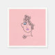 Linjegrafik av en kvinnlig ansikte med blommor. En linje teckning. Contemporary konst. Kvinna med blomma. Kvinna porträtt med linje på bakgrunden för pastellns rosa. Minimal kvinna ansikte. Kvinnor i konst.