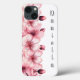 Anpassad rosa av den moderna chicens körsbärssystem på den vita bakgrunden iphone case, ett chic- och elegant-tillbehör inspirerat av den japanska skönheten. Det här moderna telefonärendet i blommigten är perfektens present- eller födelsedagspresent till henne, eller som en speciell behandling av dig själv.