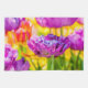 Färgviolett, lila, rosa-tulpaner på en flowerbed. Så gott som hela regnbågen färg finns. En ljus och positiv blommigt-scen. Makrofotografi.