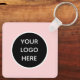 QR Code Business Logotyp, professionell, anpassningsbar dubbelsidig nyckelkedja. Rosa, enkel design. Perfekt för ditt företag, ditt företag. Kedjor för marknadsföring.