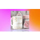 En vit chic bakgrund. Dekorerad med blommigtar för rosa, blommor (ro) och grönt vattenfärgade eukalyptus löv, sprig, grönsaks- och faux guld-sprigs. Golden sparkles. Anpassa och lägg till ett namn. Namn är skrivet med ett modernt handskript i stil med dekorationer. Om du bara vill behålla utslagen tar du bort exemplet namn lämnar du blankstegen eller symbolerna framför och efter namn.