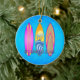 Rosa Retro fött som surfar. 3 vintagestilsurfingbrädor med det födda meddelandet som surfar. Havblåttbakgrund.