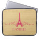 Elegant och chic Fransk Flourish Laptop sleeve med en faux woodgrain-bakgrund och en Eiffel Torn-design i magenta, med kaskader av snyggt-snurrar. Den här gigantiska och trendig-designen är enkel att anpassa med den personlig du väljer. Klicka på Anpassa om du vill söka efter fler anpassningsalternativ.