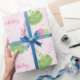 Papper innerförpackning med en söt grönt groda med party hattar med mjuk rosa och grönt färg. Mönster har ord "födelsedag" på den, men nämner inte året, så detta är perfekt för ÅRSfödelsedag.