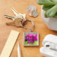 Rosa fuchsia popkonst vattenfärg blomma fyrkantig silverfärgad nyckelring