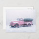 Rosa gammaldags lastbils julgran i snöstorm konst vykort