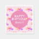 Rosa Gecko Lizard Girly Girl Birthday Napkins. Napkins har söta rosa regnbågsgeckos med fläckar. Texten står i vitt färg på rosans bakgrund. Underbar för en flickas födelsedagsfest. Lägg till ditt namn.
