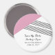 Modern och trendig Geometric Rand Spara datum magneter med en rosa triangel och tunt strimlad accent. Den här enkla men ändå elegant-magneten är konfigurerad för att enkelt kunna anpassas med din bröllop-information. Hitta fler anpassningsalternativ genom att klicka på Anpassa.