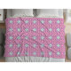 En badrumsset bestående av rosa handdukar med ett geometriskt mönster av blå blommor och hexagoner. Inkluderar en handduk och matchande tvättlapp.
