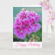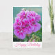 Ett vackert foto av rosa geranium som är tryckt på ett födelsedagskort lämnade tomt för ditt eget personliga budskap.
