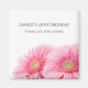 Tack på födelsedagen, med ett foto av ett par rosa gerbera-daisy. Elegant och snyggt.