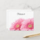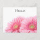 Ett vykort för hej med ett foto av ett par rosa gerbera-daisy. Elegant och snyggt.