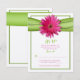 Rosa gerbera-daisy och simulerat grönt satinband bröllopssvar eller svars kort. Färgerna på detta kort är grönt, rosa och kräm. Detta kort är för närvarande konfigurerat för att skrivas ut på filt papperstyp, men skulle se trevligt ut på någon av de andra papperstyperna. Om det placeras på de andra papperstyperna kommer bakgrundsfärgen att vara vit. Ändra formuleringen för att använda detta för något annat syfte också.
