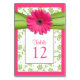 Rosa Gerbera Daisy Grönt Damask Bordsnummer Card