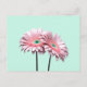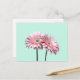 Anpassa den här vackra designen av gerbera-daisyn för rosa och mint-grönt, markera en bakgrund, tillfälle och lägg till ett eget meddelande i ditt eget ord.