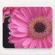 Närbild av den rosa gerberaen på en svart bakgrund.