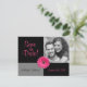 Både texten och fotot på dessa moderna och unika daisy av rosa gerbera, svartvita inbjudningar eller tillkännagivanden av bröllop spara datum är helt anpassade. Du kan ändra dem båda med alternativen för anpassning. Om du vill göra mer omfattande ändringar i den här inbjudan till rosa gerber-daisy, t.ex. ändra teckensnitt, färg eller textplacering, eller om du vill ändra bild storlek och placeringsalternativ anpassar du det alternativet. Färg på detta kort är shock rosa, svart och grått. Kontrollera även tillgängliga pappra typalternativ.