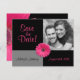 Både texten och fotot på dessa moderna och unika daisy av rosa gerbera, svartvita inbjudningar eller tillkännagivanden av bröllop spara datum är helt anpassade. Du kan ändra dem båda med alternativen för anpassning. Om du vill göra mer omfattande ändringar i den här inbjudan till rosa gerber-daisy, t.ex. ändra teckensnitt, färg eller textplacering, eller om du vill ändra bild storlek och placeringsalternativ anpassar du det alternativet. Färg på detta kort är shock rosa, svart och grått. Kontrollera även tillgängliga pappra typalternativ.