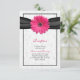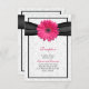 Med detta bröllopsinbjudningskort är den ljusa och glada rosa gerberan parad med ett svart band över ett ljust grått damastblommigt mönster. En vacker kombination för flera årstider. Texten är helt anpassningsbar. För att ändra texten, använd alternativet "personalisera". För mer omfattande textändringar, som ändringar av teckensnitt, teckensnittsfärg, teckensnittsstorlek eller textlayout, använd alternativet "anpassa". Detta kort är för närvarande konfigurerat för att skrivas ut på den isfärgade metalliska papperstypen, men skulle se bra ut på någon av de andra papperstyperna. Detta kort skulle också fungera bra som ett kort för riktning, boende och/eller allmän bröllopsinformation. Obs: Detta är en platt design utan några 3