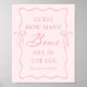 Gör din händelseroligt och interaktiv med den här Personligens Rosa Gifter sig Gissa hur många rader som Poster! Perfekt för att binda ihop idéerna i möhippan, den här charmeringsdesignen kompletterar gifter sig temat för möhippa och förbättrar alla teman för gifter sig möhippa. Med elegantens bågar är det ett måste-ha för ett möhippa-tema och passar perfekt med idéer om rosa möhippa eller en rosa möhippa. Även underbar för ett rosa babyduschtema, babydusch eller babyduschtema.