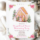 Den här eleganten och den här festinbjudan med gigingerbrödhus med festdekoration har ett vattenfärgsgingerbrödhus och vackra poinsettia-blommor i rosan. Texten kombinerar handskript och sans serif typsnitt för en snyggt och ett modernt utseende. Snögubbe, det dekorerade gräs träd och helgdag-andedräkten tillför en festlig beröring. Det här är perfekt till jul party.