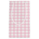 En liten glansig presentväska med en bild av baby rosa gingham. Se matcha stora och medelstora presentväskor, konfekt, etikett och förpackning papprare. Se hela samlingen med fästanordningar för barnens hörn i de SPECIELLARE TUCHERNA| Avsnittet Party favors.