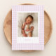 Meddela att din lilla man kommer till tidlös stil med detta rosa gingham baby-meddelandekort. Med ett mjukt pastellkontrollerat gräns, ett stort fotoområde och elegant för baby namn blandar det perfekt med en pastellestesik. Perfekt för tillkännagivande för födelse, babydusch tackkort eller keepsakerska skrivbord för nya föräldrar.