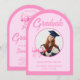 Fira din examenstudent med stil med denna charmiga rosa rutiga båge valv fotogradueringsfest inbjudan. Med en delikat handritad rosa rutig båge och en stilren valvdesign är denna inbjudan lekfull, feminin och perfekt för att dela din examenstudents milstolpe med vänner och familj. Helt anpassningsbar med din examenstudents foto, namn, datum och festdetaljer, är det det perfekta sättet att göra din fest både minnesvärd och elegant.