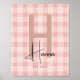 Rosa Gingham Barn Namn Initialer Poster