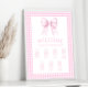 Rosa Gingham Bow Flicka Sittdiagram för Poster