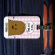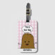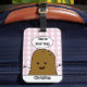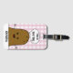 En fin bagagetagg med en söt brun potatis av lycklig-tecknad med "Det här är din väska" skriven inuti en vit tal-bubbla ovanför huvudet. Bakgrunden är en söt rosa och vit check gingham mönster. En mall i grund för att lägga till ditt namn.