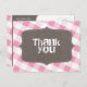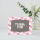 Södra land inspirerade den orustiska rosan gingham canvas tack för vykort designade med "Tack" i vitt över en bruna illustration av ram canvas struktur, på diagonal rosa och vit gingham mönster. Baksidan är personlig med ditt eget tack till anpassningsbarna. Du kan också enkelt ta bort malltexten om du vill lämna kortet/korten tomt om du vill skriva dina egna tacksamhetskänslor för hand. De här rosa gingham canvas-korten är perfekt för Baby Shower och Southern Möhippa firande.