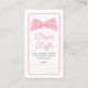 Rosa Gingham Check Bow Baby Shower Diaper Raffle Tilläggskort
