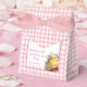 Ge alla dina vänner när de komar fira din lilla födelsedag med den här förtjusande Rosan Gingham Checker Födelsedagsfest Favor Box! En söt design med en söt liten baby-chick och en trendig rosa Checker gräns! Lägg till den speciella födelsedagen namn och datum att minnas! Exklusiv från Mitt Baby Boutique!
