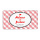 Lägg till din personliga kontakt till vilken part som helst omedelbart med dessa enkla etiketter. Texten står i klassiska typsnitt inuti en belagd oval ram med körsbär överst naturligtvis! Dessa mångsidiga klistermärken är underbara för att anpassa godis eller burkar. Söt, romantiskt och fullt av land charm, dessa gickabildsetiketter är perfekt för pickniskt bröllop, trädgårdsbröllop eller utomhuslador bröllop! De här gingham-klistermärken motsvarar gingham land-inbjudningarna till körsbärsbröllop.