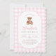 Rosa Gingham Nallebjörn Födelsedagsinbjudan